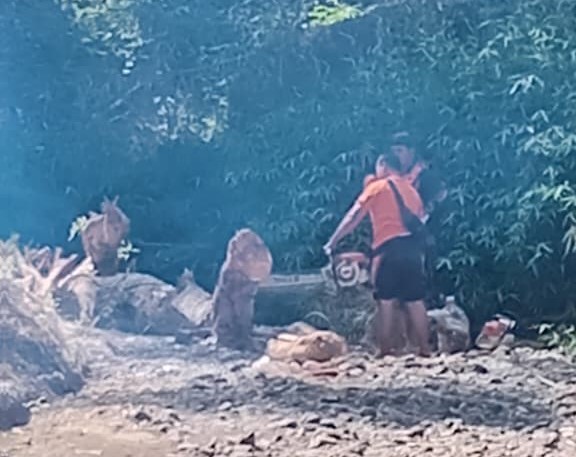 Banjar, 16 April 2026 – BPBD Kabupaten Buleleng melaksanakan pemotongan pohon kelapa dan pohon pule yang menghalangi aliran sungai di Dusun Ambengan, Desa Banjar, Kecamatan Banjar, Kabupaten Buleleng, Kamis, 16 April 2026.