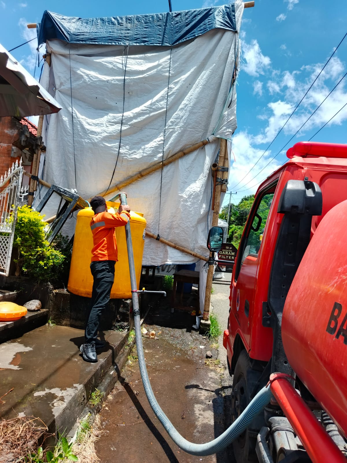 Total 5.000 liter air bersih telah disalurkan. Tim TRC Regu III telah selesai melaksanakan distribusi air bersih.