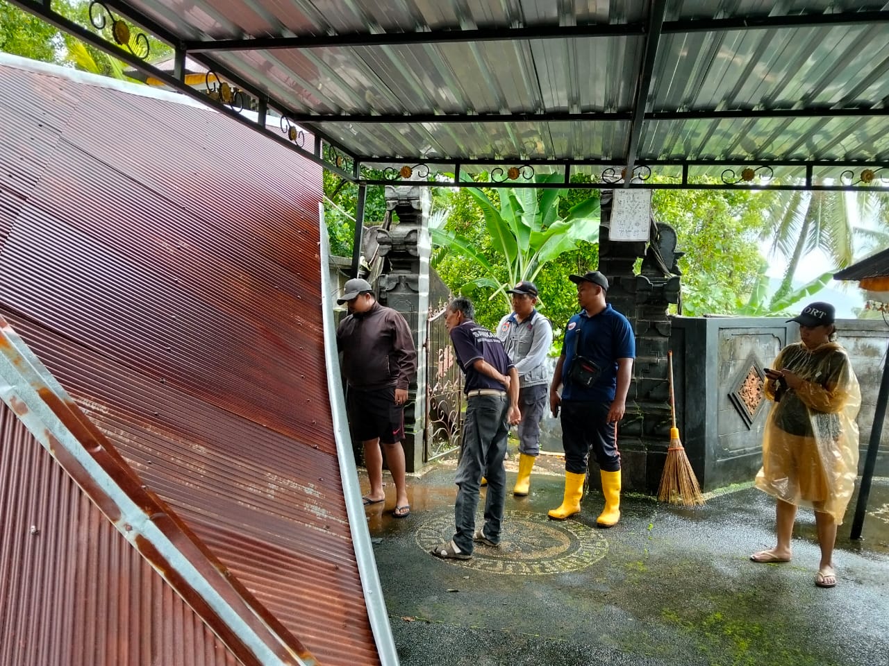 Hujan lebat yang mengguyur wilayah Busungbiu pada Sabtu pagi (31/1/2026) menyebabkan senderan pura jebol di Banjar Dinas Kanginan, Desa Kekeran.