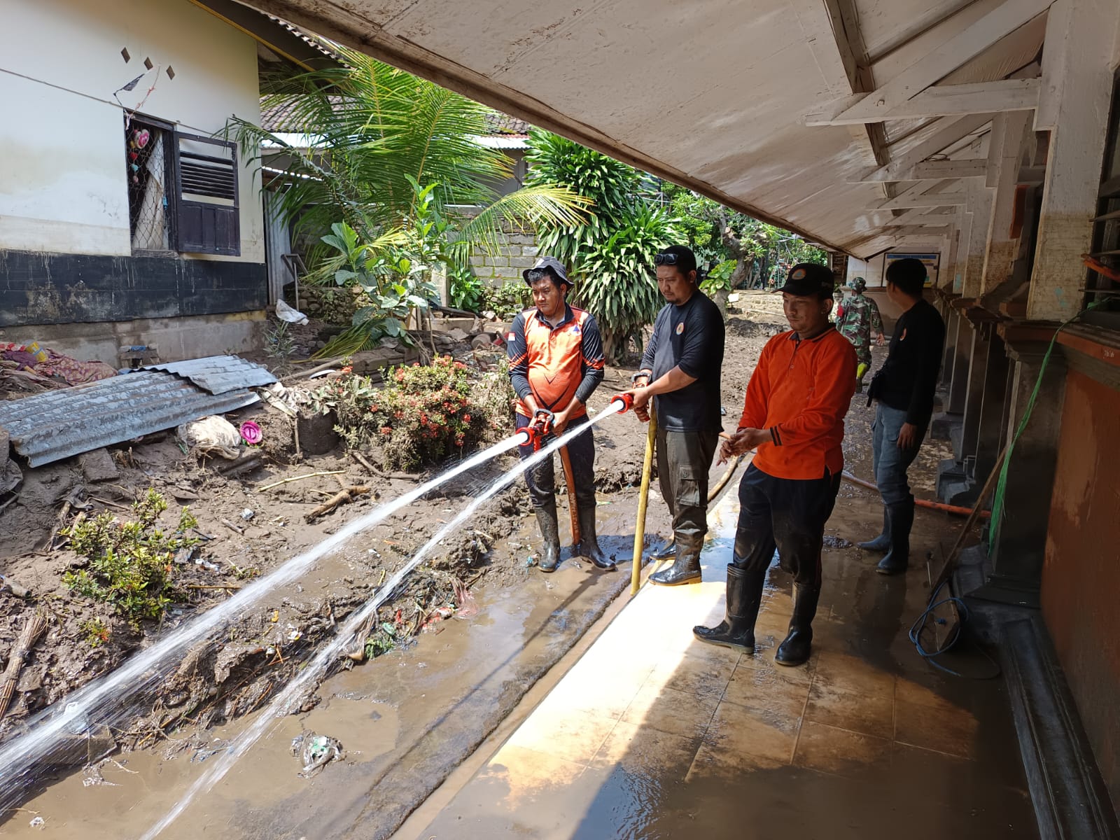 BPBD Buleleng terus bergerak! Selasa (10/3/2026), TRC PB BPBD, Staf Administrasi umum keuangan BPBD, dan Kepala Bidang Kedaruratan dan Logistik, berkolaborasi dengan TNI-AD dan guru SD 5 Banjar, melaksanakan penanganan dan penyemprotan sisa material tanah di SDN 5 Banjar.