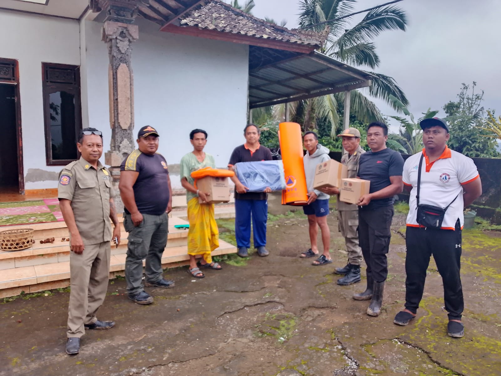 Logistik diserahkan kepada 2 warga, yaitu Ketut Subagia dan I Gede Angga Ratna Pradnyana. Bantuan yang diberikan antara lain 1 paket sembako, 1 paket sandang, 1 paket kebersihan, 1 buah terpal, 1 buah selimut, dan 1 buah matras.