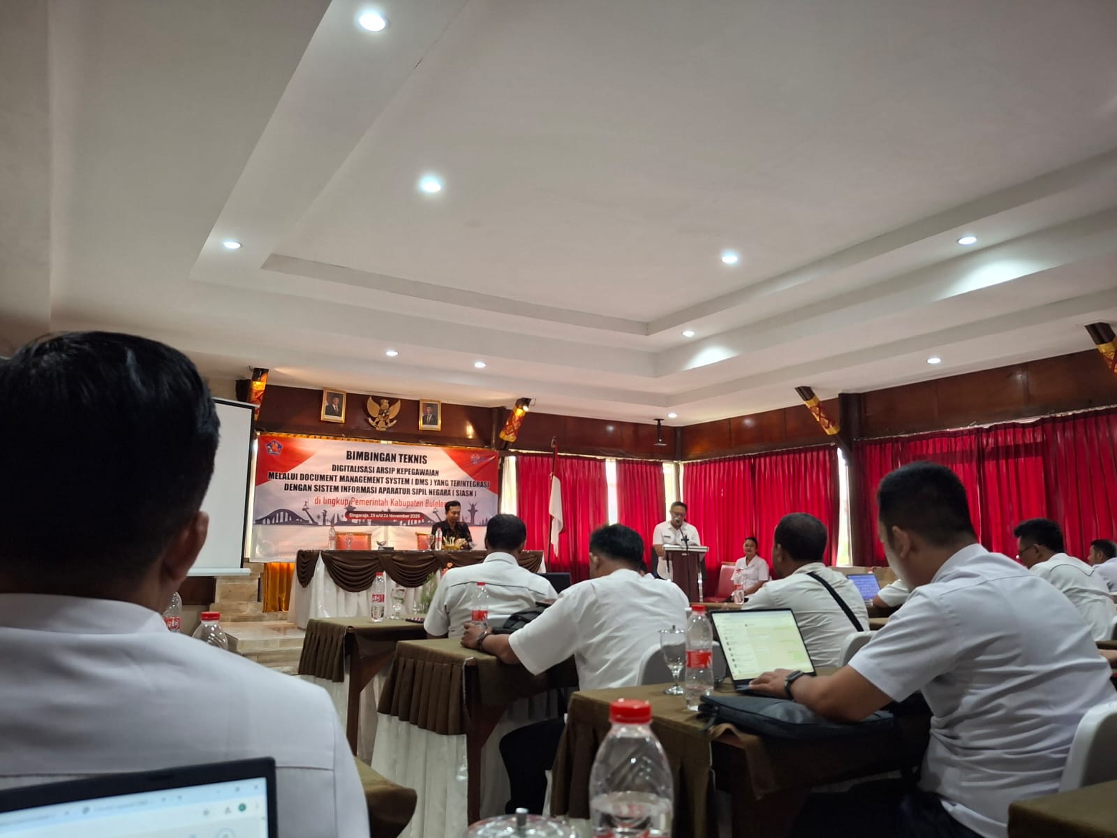 Rabu , (26/11) diwakili staf Kepegawaian BPBD Kabupaten Buleleng mengikuti Bimbingan Teknis Digitalisasi Arsip Kepegawaian melalui Document Management System (DMS) yang terintegrasi SIASN di Aneka Villas & Spa, Lovina. Narasumber kegiatan ini dari Kanreg X BKN Denpasar dan BKPSDM Buleleng membahas BKN Pedia, IP ASN, My ASN, serta dokumen utama DMS (DRH, D2NP/Pertek NIP, SK CPNS, SK PNS, SPMT CPNS). Kepala BKPSDM menekankan digitalisasi ini mempermudah pengelolaan arsip, dengan target pemenuhan dokumen utama selesai akhir November atau pertengahan Desember.