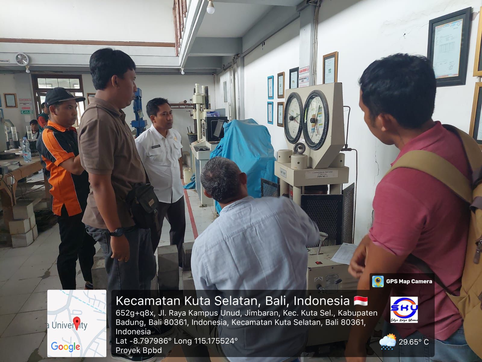 Pada hari Rabu, 29 Oktober 2025, Kepala Bidang Pencegahan dan Kesiapsiagaan (Kabid PK) beserta staf BPBD Buleleng melaksanakan kegiatan Uji Tes Paving. Pengujian ini dilakukan secara profesional di Ruang Laboratorium Uji Bahan Teknik Sipil Universitas Udayana, Jimbaran.