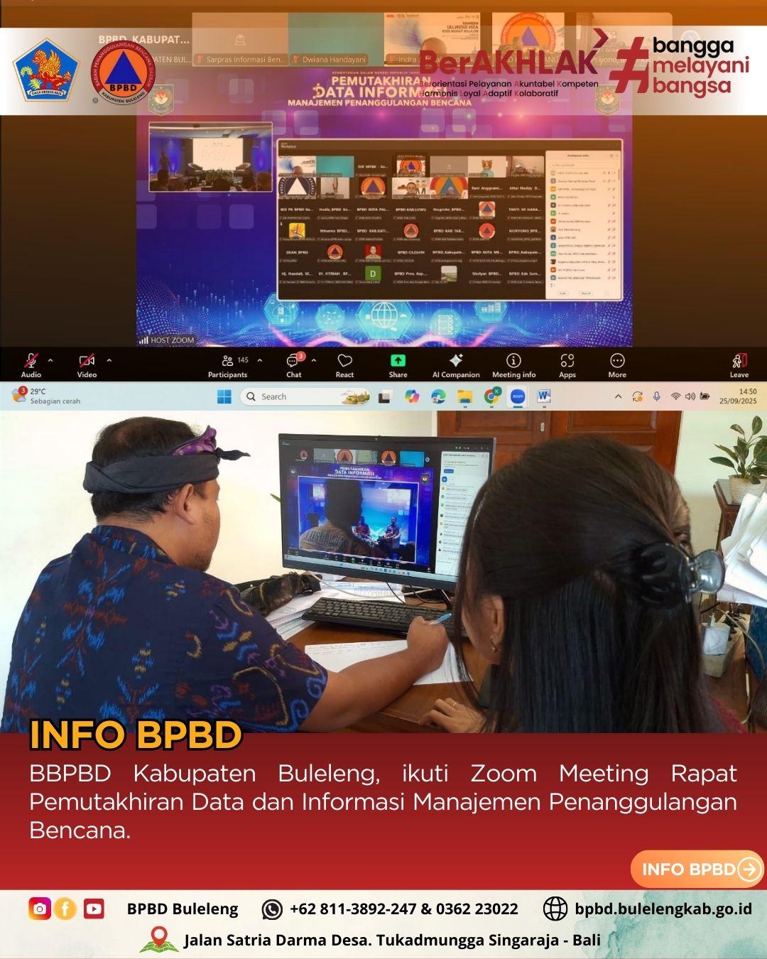 BPBD Kabupaten Buleleng , ikuti Zoom Meeting Rapat Pemutakhiran Data dan Informasi Manajemen Penanggulangan Bencana.