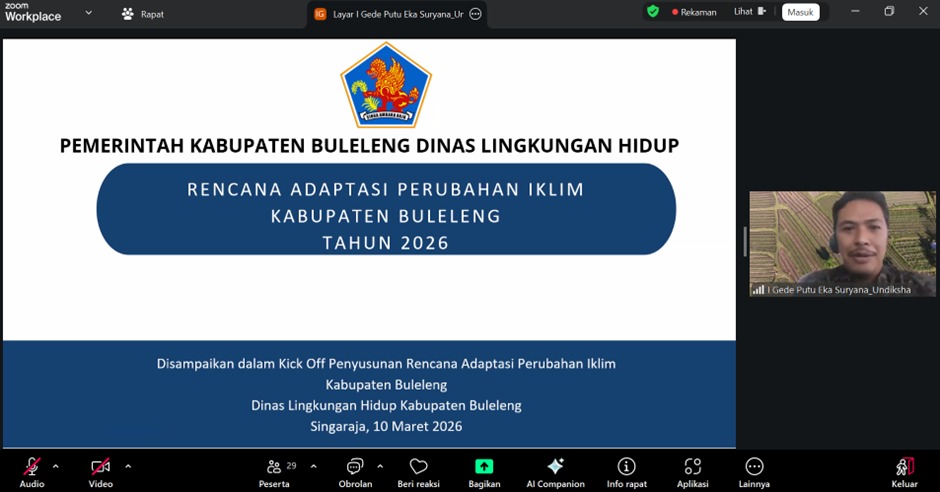 Bidang Pencegahan dan Kesiapsiagaan BPBD Buleleng mengikuti Kick Off Rencana Aksi Adaptasi Perubahan Iklim yang diselenggarakan oleh DLH Kabupaten Buleleng pada Selasa (10/3/2026) secara daring.