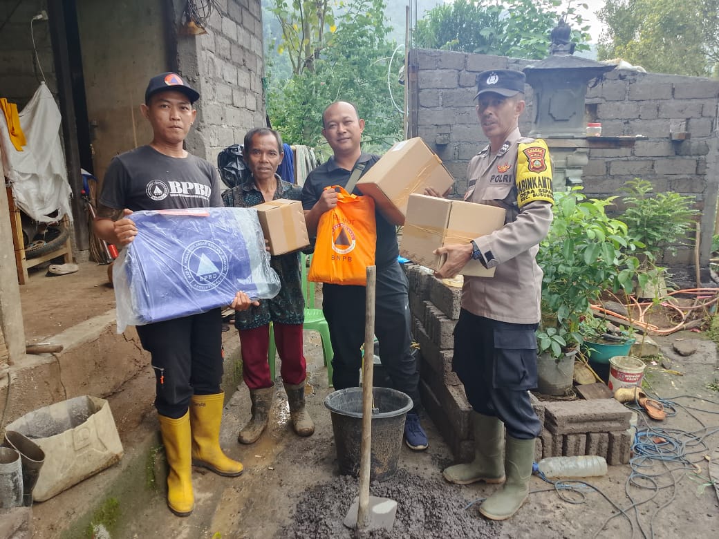 Tim Reaksi Cepat (TRC) BPBD Kabupaten Buleleng, bersama dengan Babinkamtibmas Sepang, melakukan asesmen dan penyaluran bantuan logistik kepada korban, I Wayan Miarta. Bantuan yang disalurkan antara lain selimut, matras, terpal, sembako, sandang, dan kebersihan.