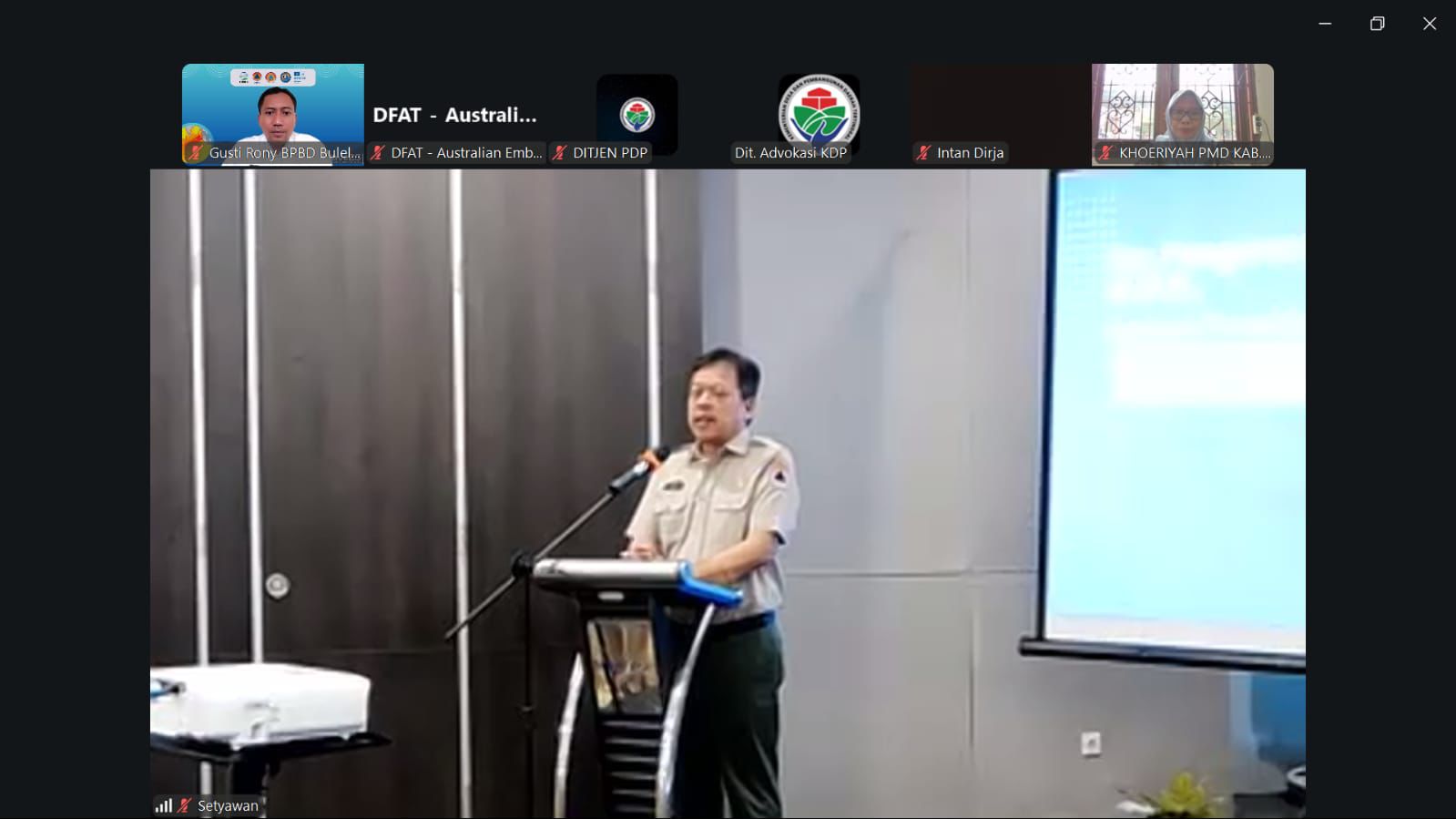 Sekretaris BPBD dan Kabid PK bersama staf mengikuti Rapat Evaluasi Pelaksanaan Pendataan Indeks Desa tahun 2025 dan Identifikasi Isu Desa dan Perdesaan Bidang Kebencanaan via zoom meeting, Rabu (28/1/2025).