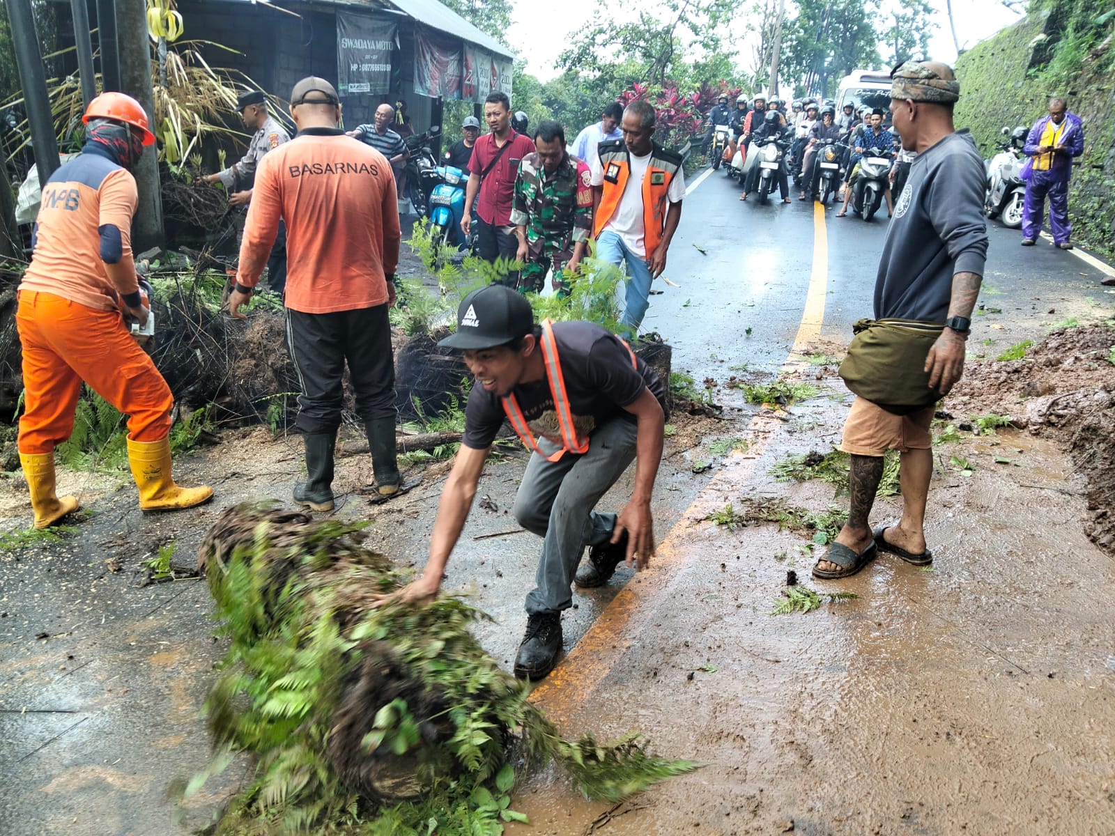 Buleleng, 20 November 2025 - Tim Reaksi Cepat Penanggulangan Bencana BPBD Kabupaten Buleleng melakukan penanganan longsor di Desa Gitgit, Sukasada, yang terjadi pada pukul 14.20 WITA akibat hujan deras. Pohon tumbang yang ikut tersapu longsor telah dibersihkan, sehingga akses jalan sudah normal kembali. Tim yang atensi di TKP antara lain TRC Regu 2, Babinsa, Babinkamtibnas, Relawan Destana Gitgit, Balai Jalan, Polsek Sukasada, dan masyarakat setempat.